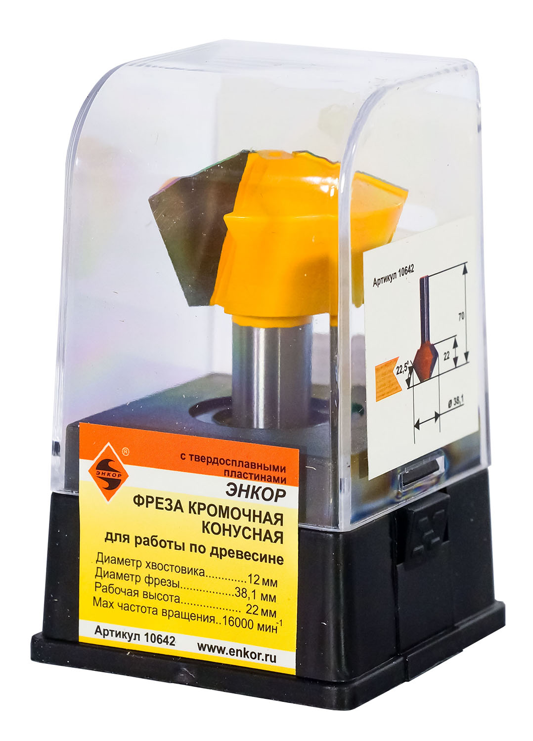 Фреза кромочная конусная (Ø 38,1х22,2 мм; 22,5°; хвостовик 12 мм) Энкор (10642)