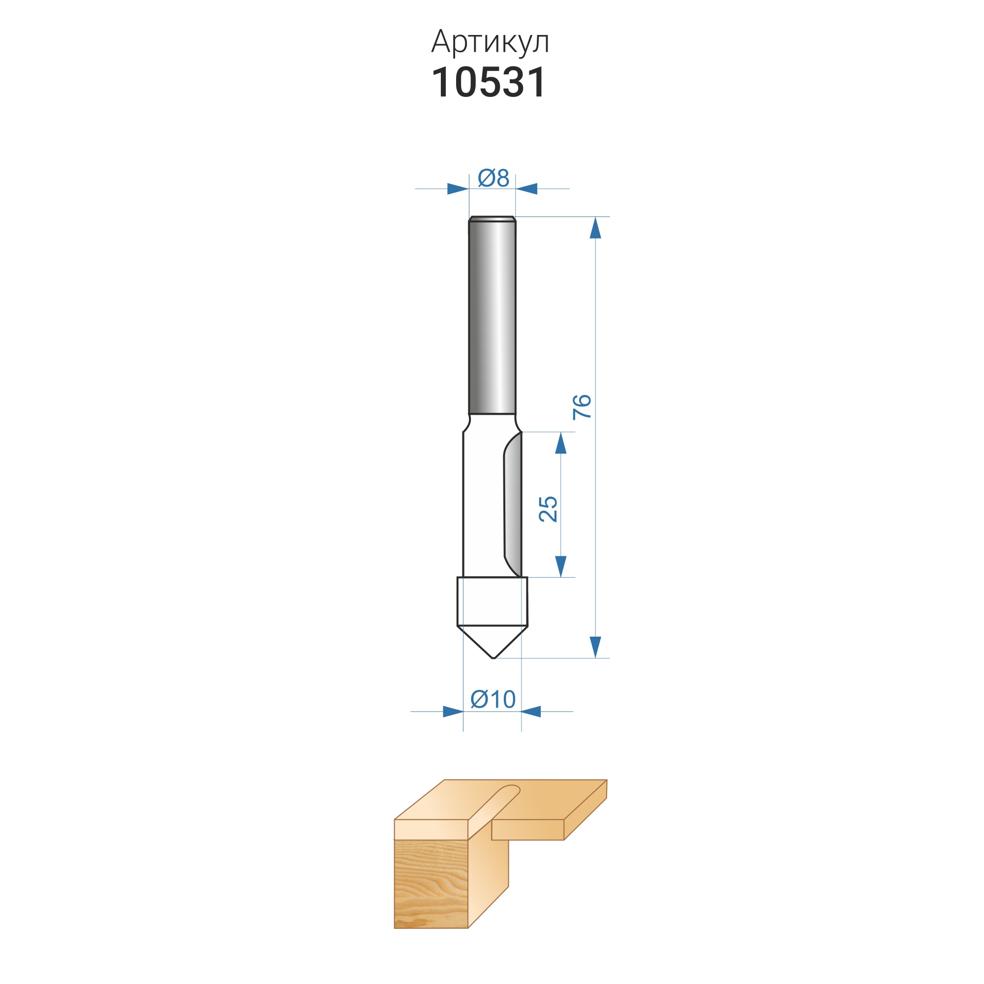 Фреза Энкор 10531 предназначена для чистовой обработки кромки и торца изделия из различных пород древесины.