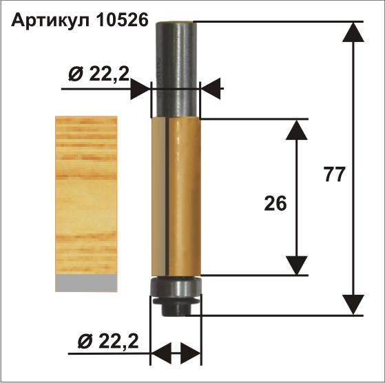 Фреза Энкор 10526 предназначена для чистовой обработки кромки и торца изделия из различных пород древесины.