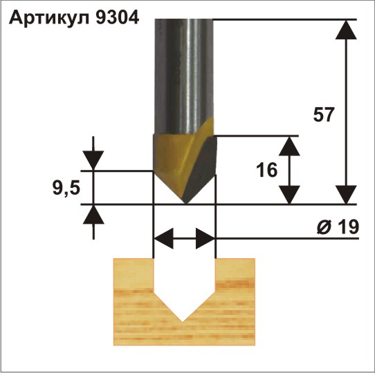 Фреза пазовая галтельная V-образная (19х16х57 мм; хвостовик 12 мм; 90°) Энкор (9304)