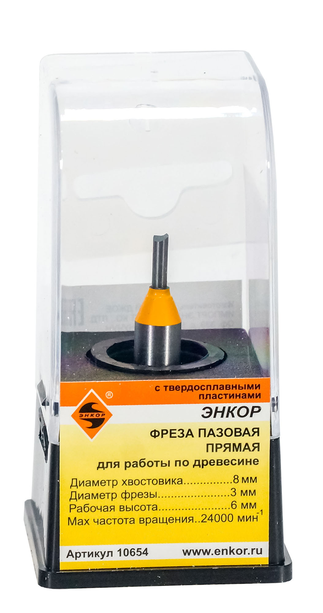 Фреза Энкор 10654 предназначена для изготовления пазов (канавок) требуемой ширины и глубины в изделиях из различных пород древесины.