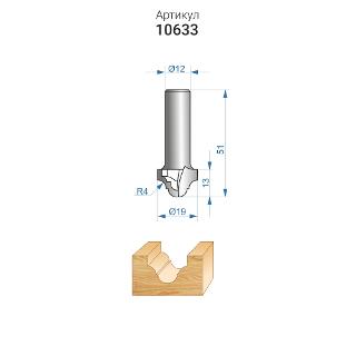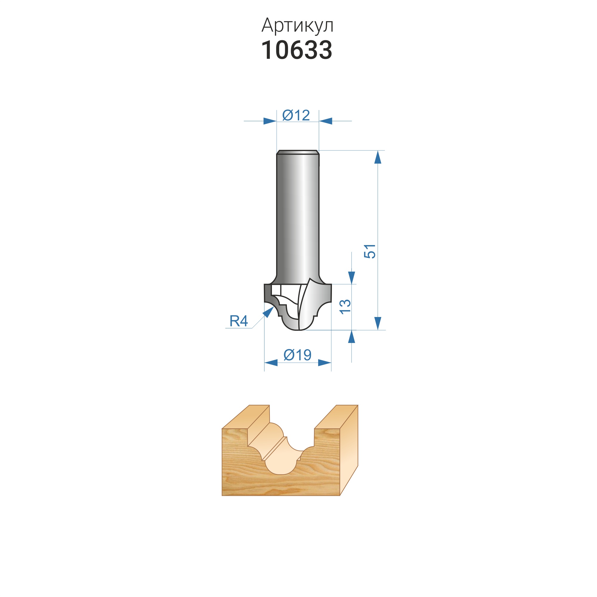 Фреза пазовая фасонная (Ø 19х13мм;R 4 мм;хвостовик 12мм) по дереву Энкор (10633)