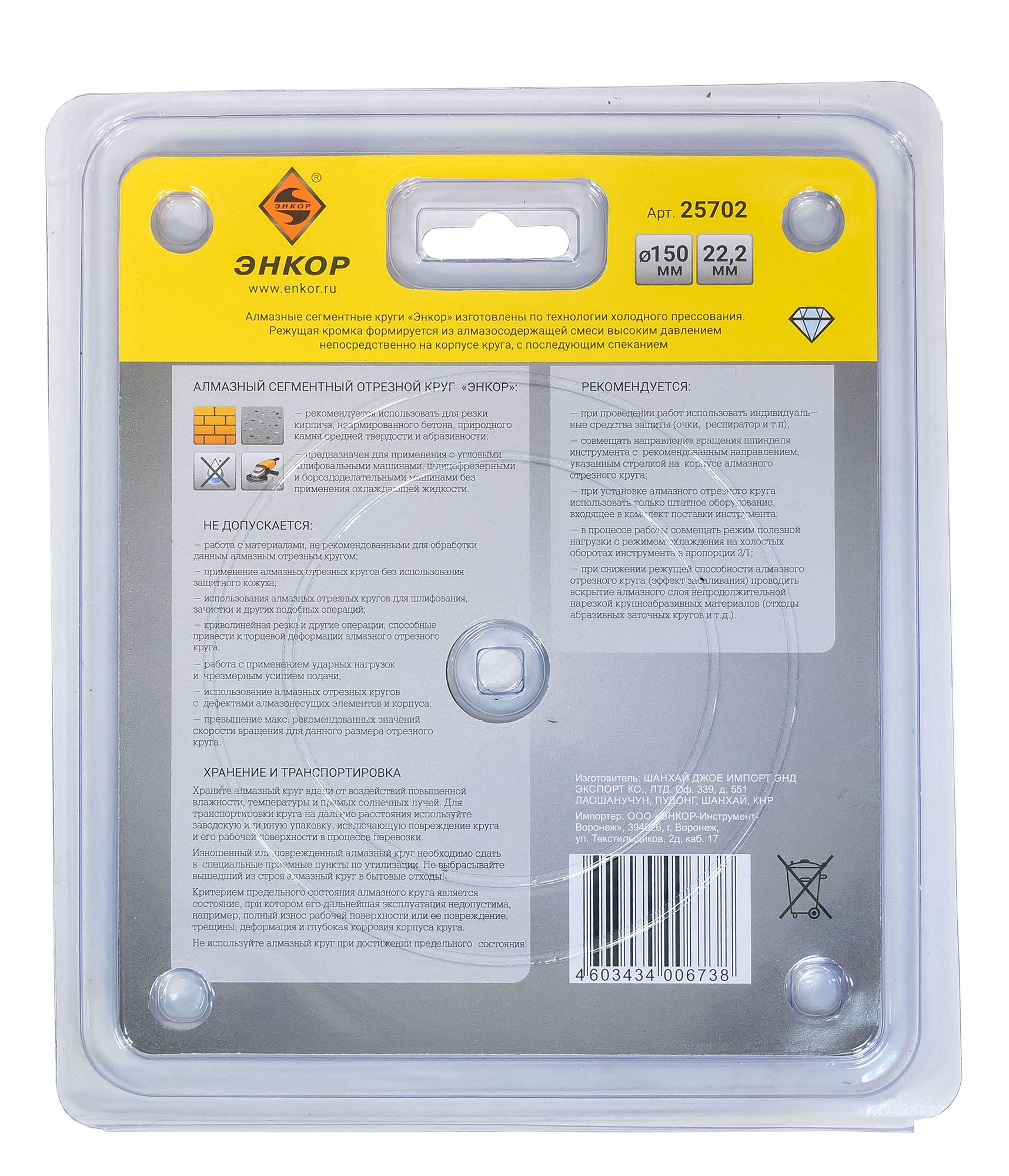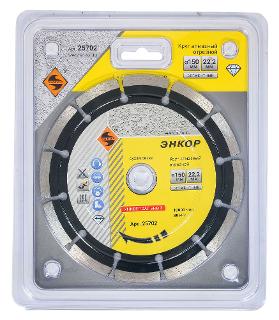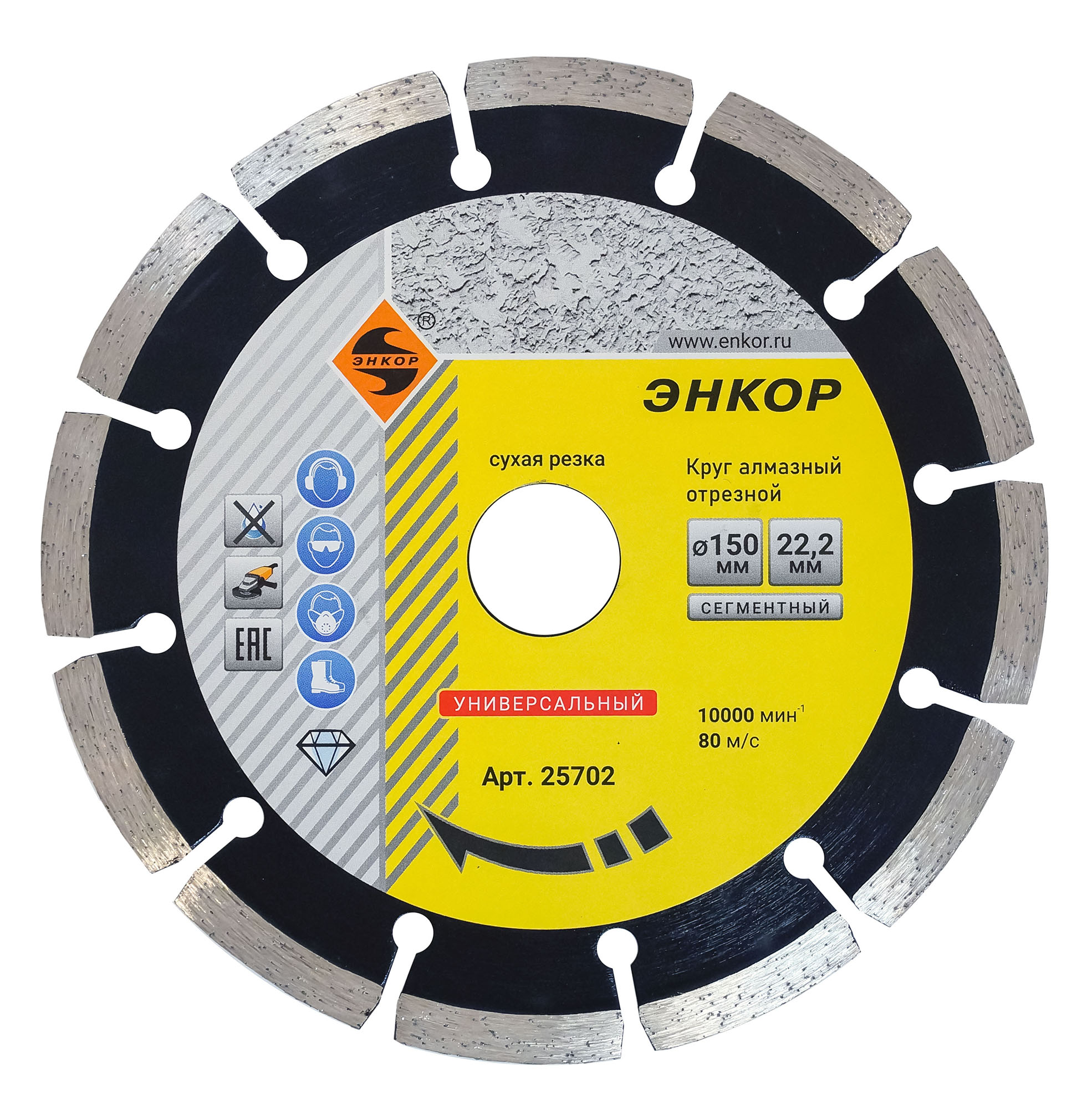 Универсальный алмазный диск Энкор 25702 подходит для резки всех видов материалов, но в большей степени его рекомендуется использовать для работ по бетону и кирпичу.