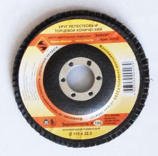 Круг лепестковый торцевой Ø115х22,2 К100 конический Энкор (20513)