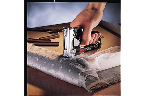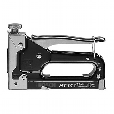 • Механический степлер Bosch НТ14 0.603.038.001 предназначен для выполнения работ по обтяжке тканью мебели, а также креплению изолирующего материала, парниковой пленки и пр.