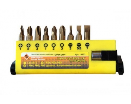 • Вставки шлиц, 25 мм 3; 5,5; 7 3 Вставки PH, 25 мм PH1; PH2; PH3 3 Вставки PZ, 25 мм PZ1; PZ2; PZ3 3 Держатель для вставок быстрозажимной, 50 мм 1
