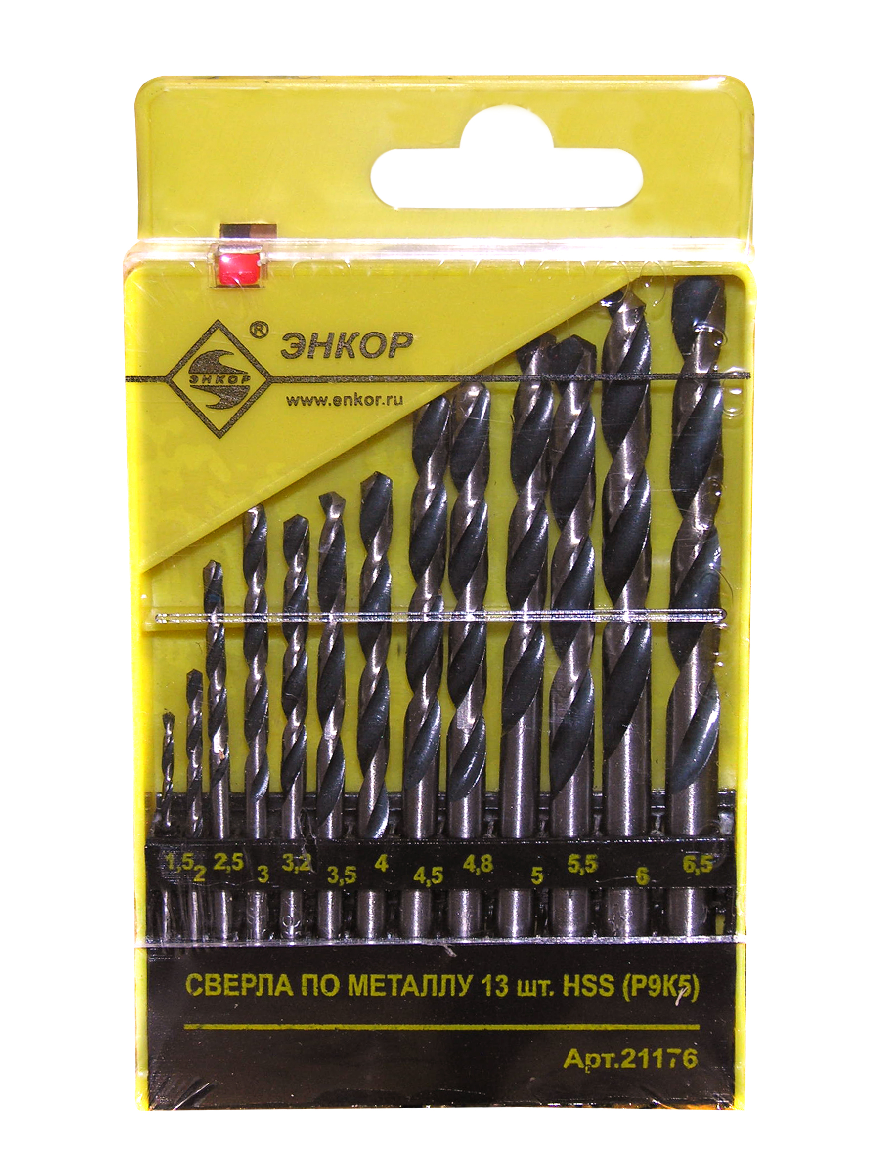 Набор сверл по металлу 13 шт. (1,5-6,5 мм) Энкор (21176)