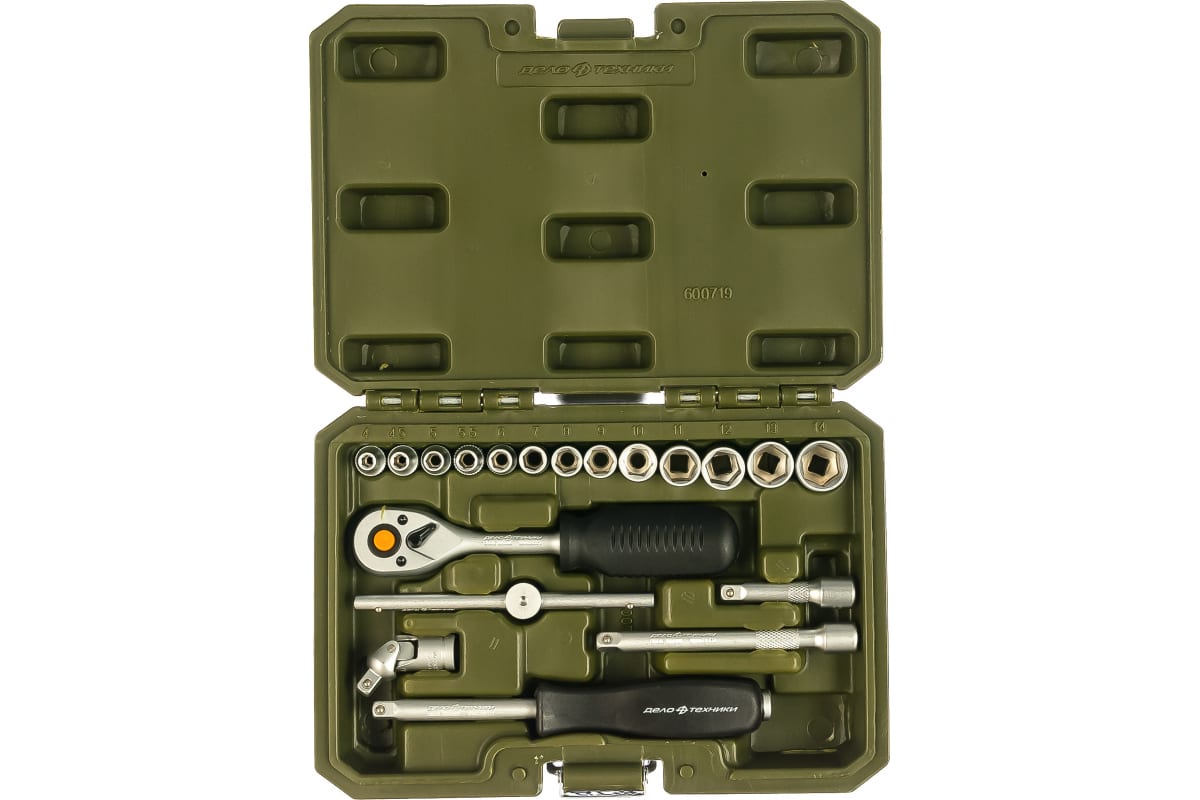 Набор шестигранных головок с трещоткой 1/4 19 предметов ДТ/20 Дело Техники 600719 предназначен для монтажа и демонтажа резьбовых и торцевых соединений.