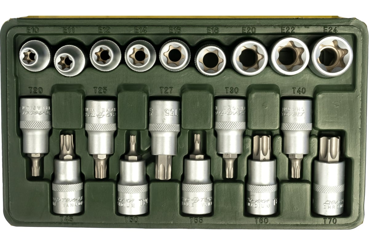Набор головок TORX и головок со вставкой TORX 1/2 19 предметов Дело Техники (623719)