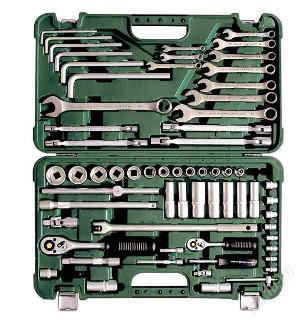 В набор входят всевозможные виды ключей, головок и удлинителей для максимального удобства применения. Составляющие изготовлены из хромванадиевой стали, которая обладает повышенной износостойкостью и долговечностью.