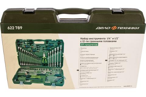 Набор для ремонта иномарок 89 предметов ДТ/2 Дело Техники 622789 представляет собой многофункциональный комплект инструментов для обслуживания автомобиля.