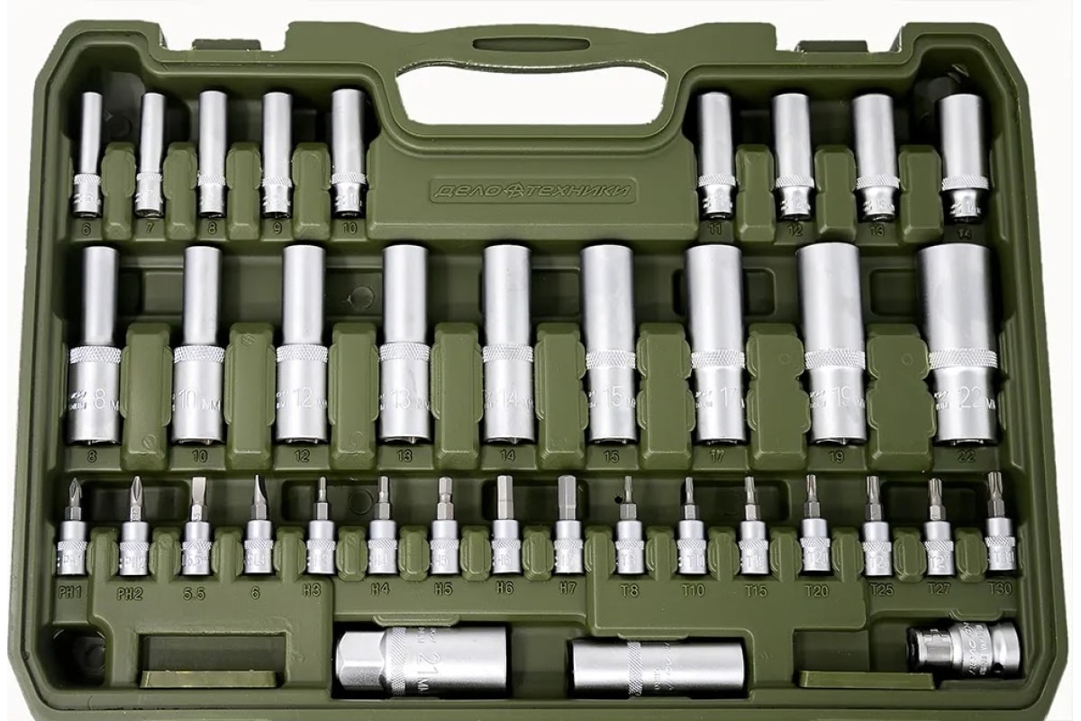 • Набор инструмента 1/2, 1/4 94 предмета Дело Техники ДТ/3 620794 - это практичный и многофункциональный комплект для обслуживания резьбовых соединений.