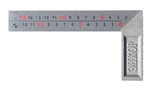 • Угольник с чугунным основанием Энкор 10856 удобен для проверки прямого угла и проведения разметочных работ.