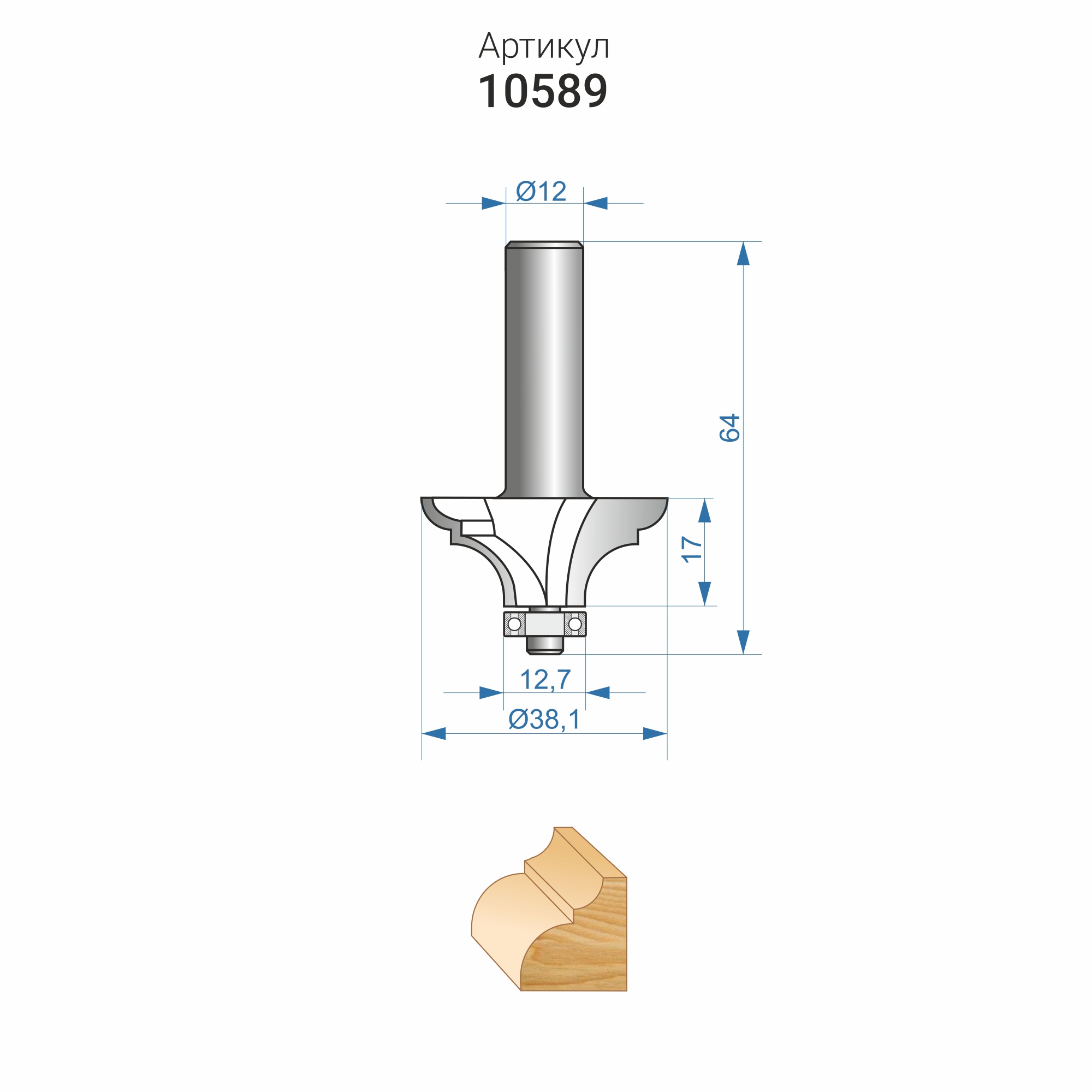 Фреза Энкор 10589 предназначена для декоративной обработки кромок филенок с одной стороны при изготовлении мебельных дверок, элементов каркасной мебели, стеновых панелей, потолочных плиток.