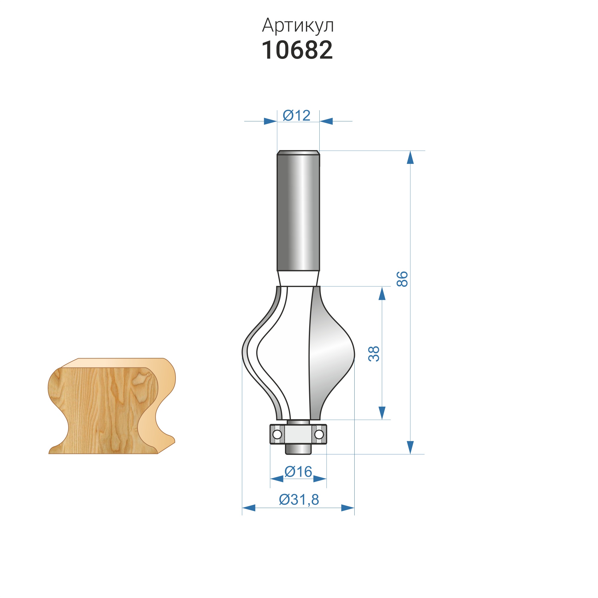 Фреза Энкор 10682 предназначена для чистовой обработки кромки и торца изделий из различных пород древесины.
