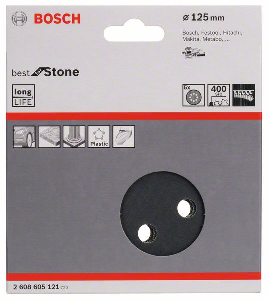 Шлифкруги Bosch Ø 125 липучка 8 отверстий для камня k 400 ( 5шт) (2 608 605 121)