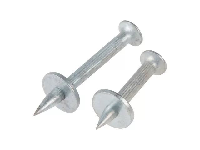 • Монтажный дюбель-гвоздь для пистолета – это металлический гвоздь, который имеет широкую шляпку и подвижную шайбу в районе острия.