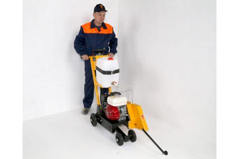 Бензиновый резчик хорошо подходит для работы с дорожным полотном на открытой местности.