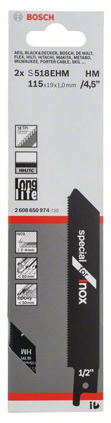Пилки для ножовки по нержавейки S 518 ЕHM 2шт. Bosch (2 608 650 974)