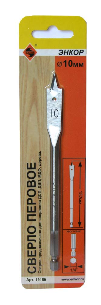 Сверло для дерева 10Х152 ММ, перовое Энкор (19159)