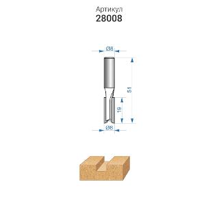 Фреза Энкор 28008 предназначена для изготовления пазов (канавок) требуемой ширины и глубины в изделиях из ДСП.