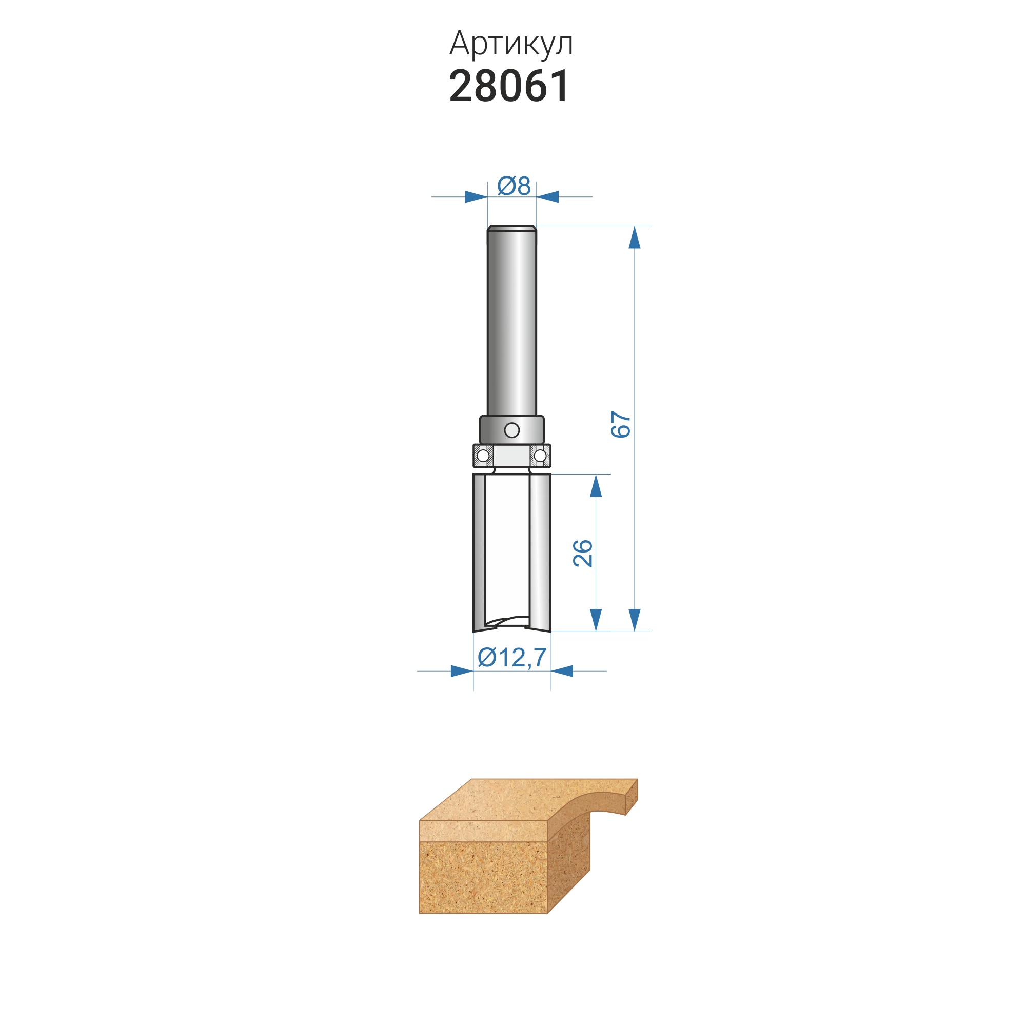 Фреза Энкор 28061 предназначена для чистовой обработки кромки и торца изделия из ДСП.