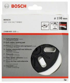 • Мягкая опорная тарелка BOSCH 2.608.601.115 применяется совместно с эксцентриковыми шлифовальными машинами Bosch GEX 150 AC, GEX 150 Turbo Professional.