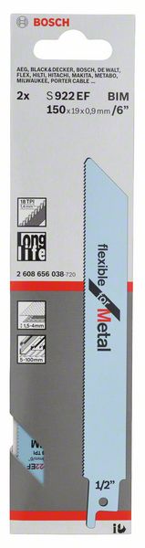 Полотно пильное по металлу 2 шт. 150х19х0,9 мм Bosch S 922 EF (2 608 656 038)