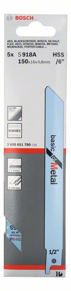 • Пять волнистых фрезерованных полотен по металлу Bosch 2.608.651.780 для сабельных ножовок.