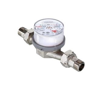 Водосчетчик универсальный – для измерения расхода холодной и горячей воды, главным образом – в квартирах. Условный диаметр модели – 1/2"; номинальный расход воды – 1,5 куб. м/ч.