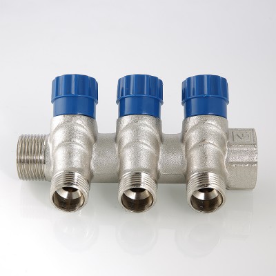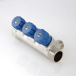 Коллектор с вентилями 3 выхода х 1х 1/2 НР, никель Valtec (Vtc.560.N.0603)