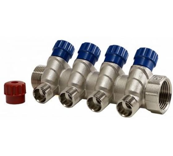 • Латунный никелированный коллектор на 4 выхода диаметром 1/2" с наружной резьбой.