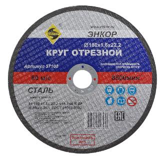 • Отрезной круг Энкор 57108 используется в угловых шлифовальных машинах для обработки металла.