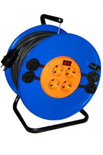 Удлинитель электрический силовой на металлической катушке с четырьмя розетками, предназначен для использования на строительной площадке, на производстве, при выполнении ремонтных и монтажных работ.