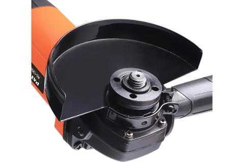 Двуручная УШМ для работы дома и в мастерской. Обладает повышенным запасом мощности, что позволяет ей работать с различными материалами: металл, кирпич, плитка, камень. Тонкая задняя рукоятка и фиксация кнопки включения повышает удобство при работе с инструментом, а дополнительная антивибрационная рукоятка устанавливается в двух положениях.