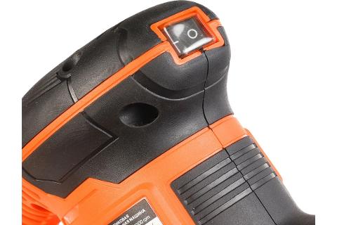 Комплектуется пластиковым коробом для сбора пыли, а так же имеет пылезащищённую кнопку включения, что увеличивает срок службы инструмента.