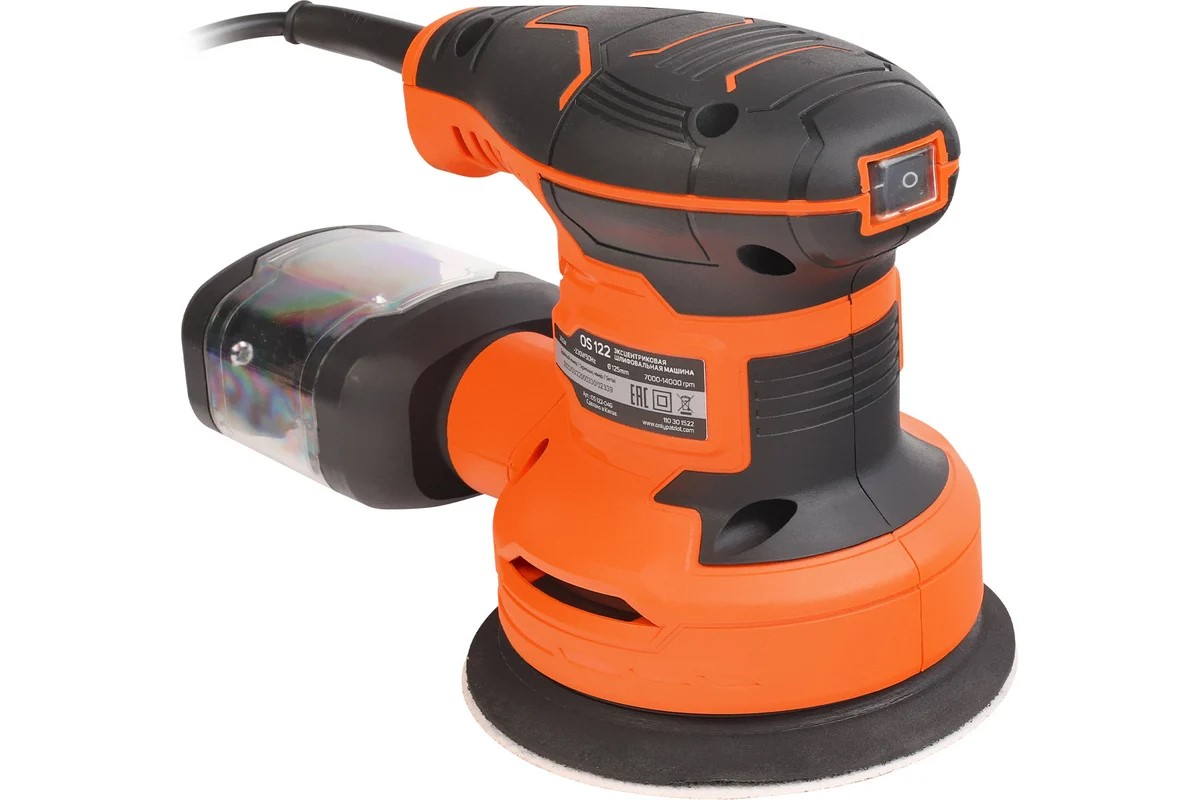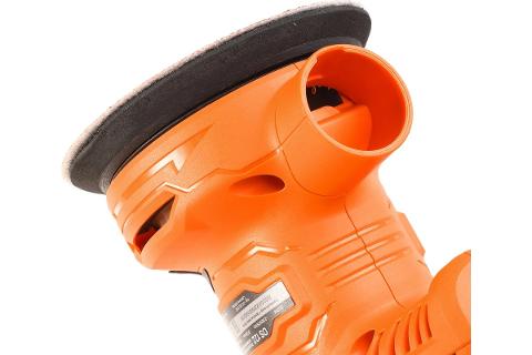 Эксцентриковая шлифовальная машина оснащена мощным двигателем на 300Вт с функцией регулировки скорости в диапазоне от 7000 до 14 000 об/мин, что позволяет выполнять различные отделочные работы, от грубого шлифования материала до высокопроизводительных отделочных работ.