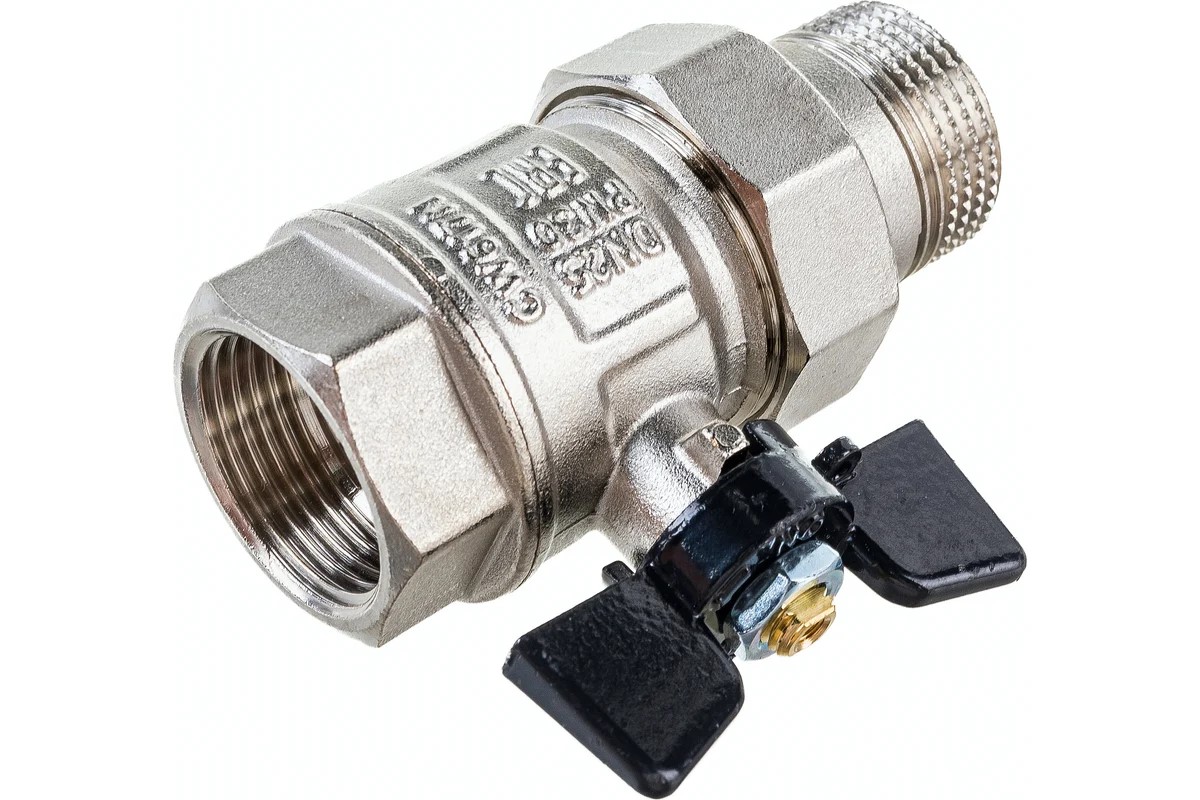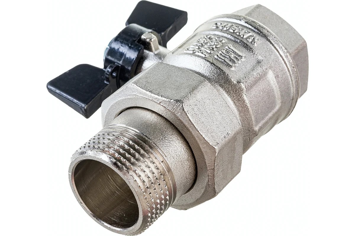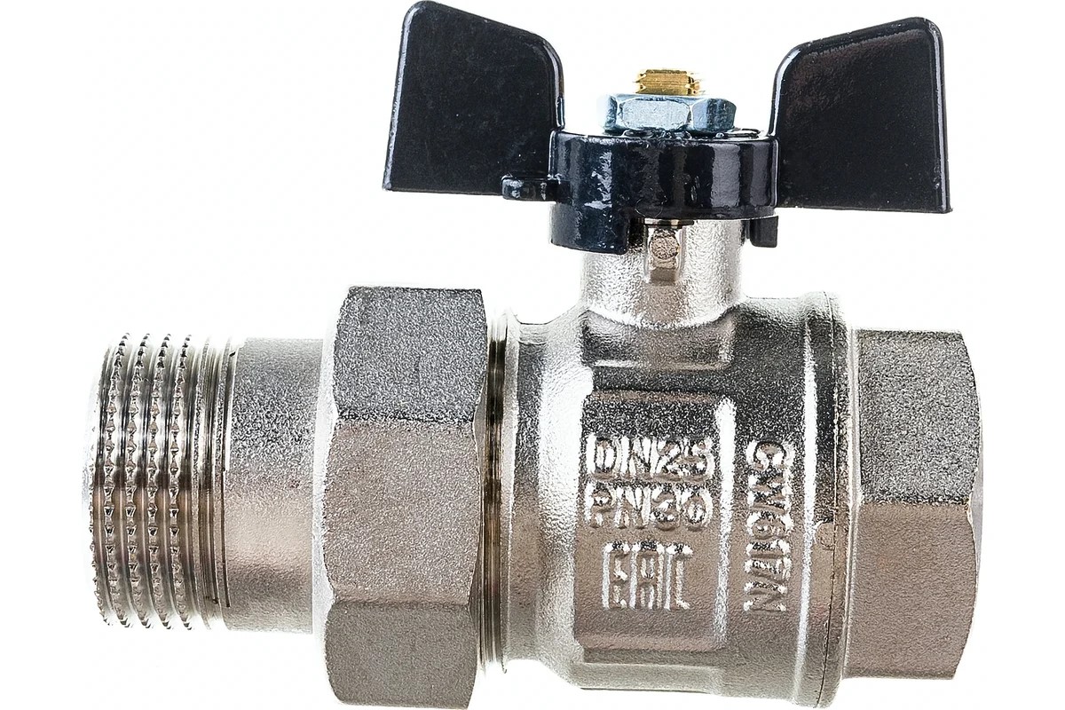 Кран Американка Н/В Ду-25 /1" бабочка черная Bugatti NEW JERSEY 9220006 - латунный шаровый кран с никелированной поверхностью. С двух сторон расположена резьба (внутренняя и наружная по ISО 228/1), также предусмотрена накидная гайка.