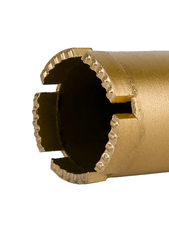 Алмазная коронка для мокрого сверления 51мм (рабочая длина 400мм, посадка 1 1/4") предназначена для сверления бетона, железобетона, кирпича и других твердых абразивных материалов. Устанавливается на алмазные дрели с валом 1 1/4". Коронка изготовлена методом пайки из высококачественного корпуса и специального алмазного сегмента. Отличительной особенностью коронки является высокая скорость сверления, а также универсальность применения. Бурение необходимо осуществлять с подачей воды..Ресурс коронки от 5 до 7 погонных метров, что составляет до 50 отверстий в стандартных перекрытиях..Скорость сверления в бетоне 2,5 см в минуту.Эффективно работает на установках для алмазного сверления мощностью от 1,2 КВт до 3,5 КВт..Хвостовик - 1 1/4".Диаметр - 51 мм.Рабочая длина - 400 мм.Кол-во сегментов - 5 шт