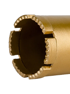 Алмазная коронка для мокрого сверления 63мм (рабочая длина 400мм, посадка 1 1/4") предназначена для сверления бетона, железобетона, кирпича и других твердых абразивных материалов. Устанавливается на алмазные дрели с валом 1 1/4". Коронка изготовлена методом пайки из высококачественного корпуса и специального алмазного сегмента. Отличительной особенностью коронки является высокая скорость сверления, а также универсальность применения. Бурение необходимо осуществлять с подачей воды..Ресурс коронки от 5 до 7 погонных метров, что составляет до 50 отверстий в стандартных перекрытиях..Скорость сверления в бетоне 2,5 см в минуту.Эффективно работает на установках для алмазного сверления мощностью от 1,2 КВт до 3,5 КВт..Хвостовик - 1 1/4".Диаметр - 63 мм.Рабочая длина - 400 мм.Кол-во сегментов - 6 шт
