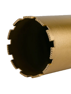 Алмазная коронка для мокрого сверления 132мм (рабочая длина 400мм, посадка 1 1/4") предназначена для сверления бетона, железобетона, кирпича и других твердых абразивных материалов. Устанавливается на алмазные дрели с валом 1 1/4". Коронка изготовлена методом пайки из высококачественного корпуса и специального алмазного сегмента. Отличительной особенностью коронки является высокая скорость сверления, а также универсальность применения. Бурение необходимо осуществлять с подачей воды..Ресурс коронки от 5 до 7 погонных метров, что составляет до 50 отверстий в стандартных перекрытиях..Скорость сверления в бетоне 2,5 см в минуту.Эффективно работает на установках для алмазного сверления мощностью от 1,2 КВт до 3,5 КВт..Хвостовик - 1 1/4". Диаметр - 132 мм. Рабочая длина - 400 мм. Кол-во сегментов - 11 шт