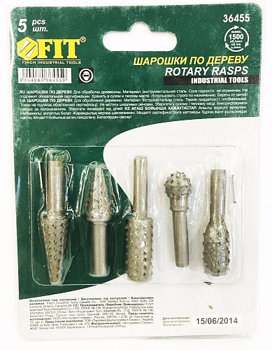 Шарошки для фигурных отверстий по дереву, 5 шт. FIT (36455)