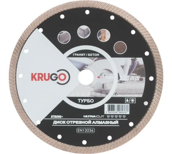 Круг алмазный KRUGO ø230x2.6x10х22.2 универсальный Турбо