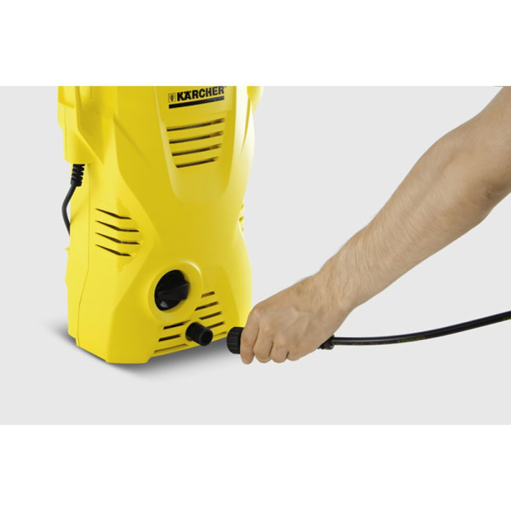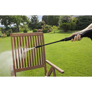 Минимойка Karcher K 2 оснащена двумя колесами, пистолетом, 4-метровым шлангом высокого давления, 1-позиционной струйной трубкой, а также грязевой фрезой для интенсивной очистки и водяным фильтром, защищающим насос от частиц, содержащихся в подаваемой на вход аппарата воде. Минимойка рассчитана на применение время от времени – например, для очистки слегка загрязненной садовой мебели, а также велосипедов или садовых инструментов.