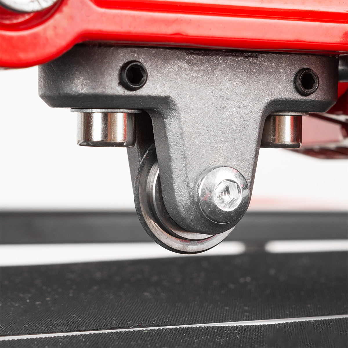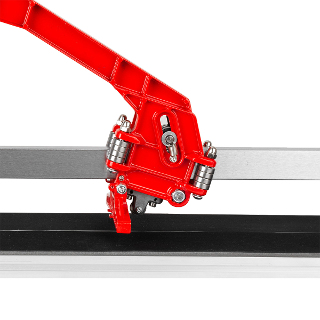 Рабочая каретка плиткореза изготовлена из алюминия и охватывает стальную направляющую с четырех сторон, передвигается посредством шарикоподшипникового механизма из 20 высококачественных подшипников (по 8 подшипников с двух сторон и по 2 подшипника сверху и снизу).