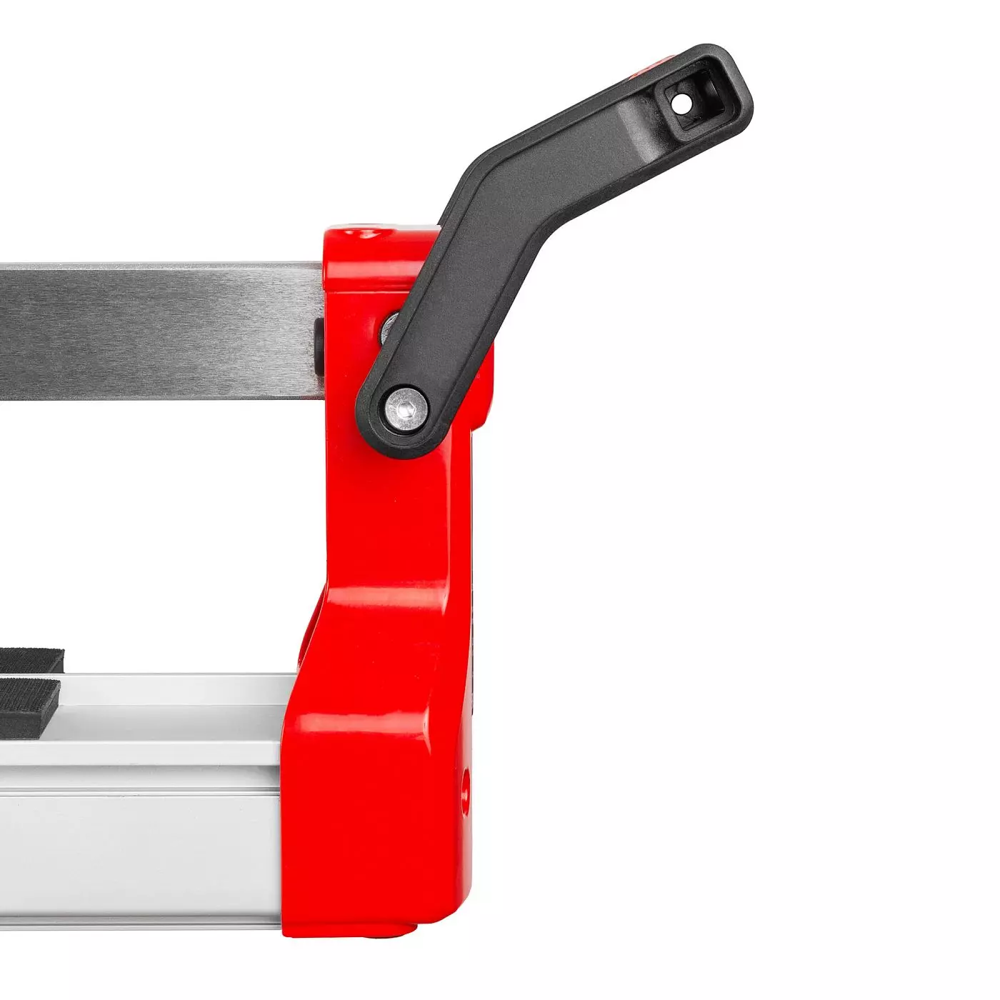 Лапка разлома плитки изготовлена из алюминия и имеет возможность быстрой фиксации в момент реза. Рабочая ручка для резки и разлома изготовлена из алюминия, имеет эргономичную форму и высокую прочность, что обеспечивает при разломе высокое усилие.