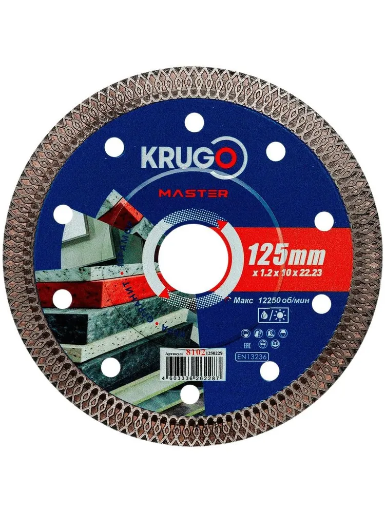 Круг алмазный KRUGO ø125x1,2x10х22 керамогранит ультратонкий