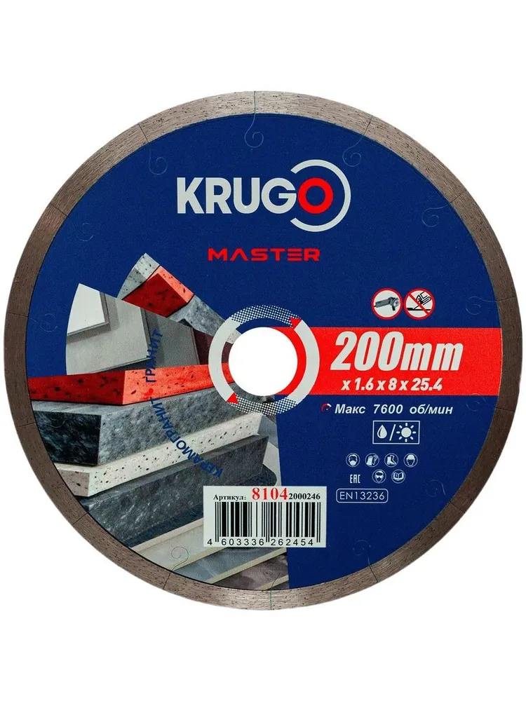 Круг алмазный KRUGO ø200х1,6х25х8х25,4/22 керамика ультратонкий