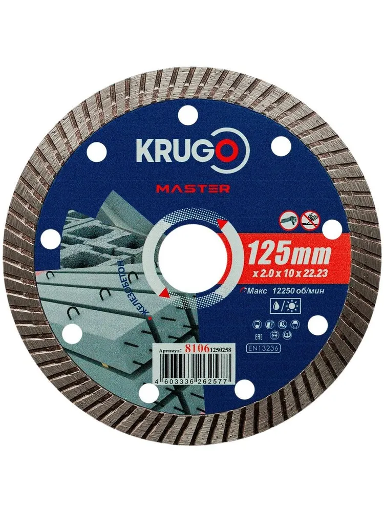Круг алмазный KRUGO ø125x2.0x10х22.2 для железобетона, турбокромка