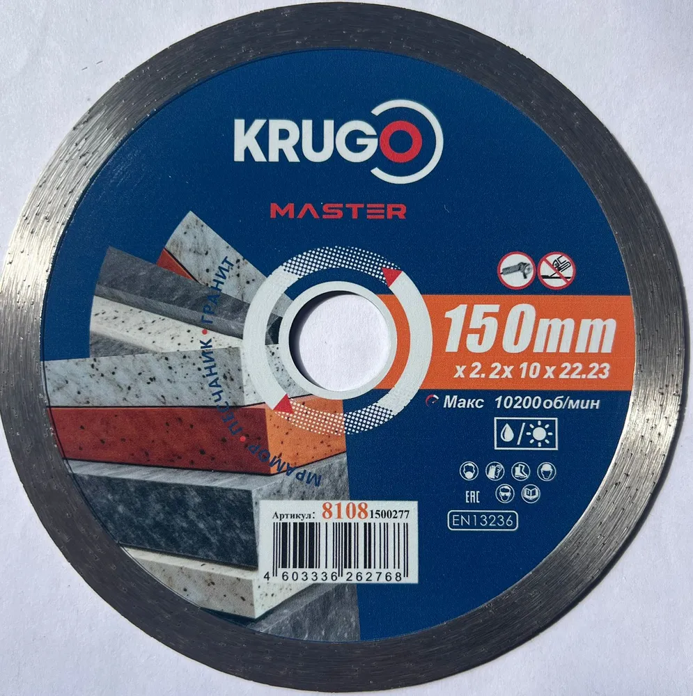 Круг алмазный KRUGO ø150x2.2x10х22.2 бетон сплошная кромка